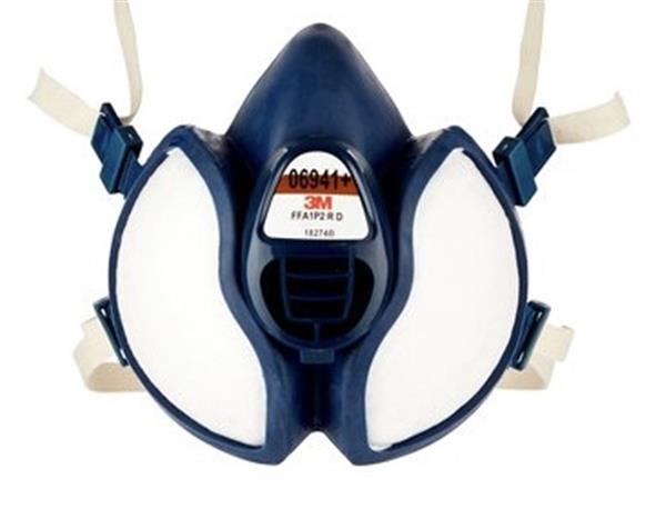 Het vernieuwde 3M verfdampmasker 06941+. A1 FFP2 R D. Het 3M wegwerpmasker voor gassen en dampen 6941+ is een masker met ventiel, compleet met twee FFA1P2 R D-filters. Typische toepassingen zijn onder meer het spuiten van isocyanaatvrije lakken en specifieke lijmen, coatings en afdichtmiddelen. Ook geschikt voor ontvetten en verfmengen (bij onvoldoende ventilatie) wanneer de kans bestaat dat dampen van oplosmiddelen worden ingeademd. Het onderhoudsvrije masker kan tot 40 uur worden gebruikt, zolang het in een afgesloten, luchtloze omgeving wordt bewaard wanneer het niet wordt gebruikt (bijv. in de zak waarin het masker wordt geleverd).