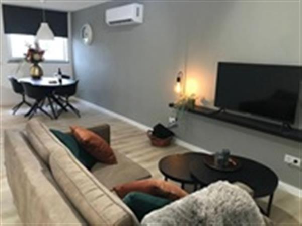 Het appartement bevindt zich op de 1e verdieping van het complex en is volledig gerenoveerd en gemoderniseerd. De ruime woonkamer met open keuken biedt veel lichtinval en is sfeervol ingericht. De keuken is van alle gemakken voorzien, waaronder een inductie kookplaat, combi-oven, vaatwasser, koelkast en afzuigkap, ideaal voor wie houdt van koken in een moderne setting.