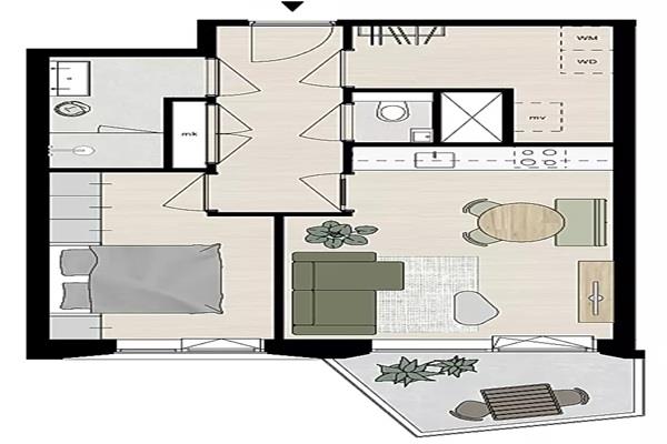 Vanuit de woonkamer stap je direct het balkon op, waar je in alle rust kunt genieten van een of een goed boek. De slaapkamer is ruim genoeg voor een tweepersoonsbed en een kledingkast en biedt een rustige plek om te ontspannen. De badkamer is modern afgewerkt en beschikt over een inloopdouche, wastafel en radiator.