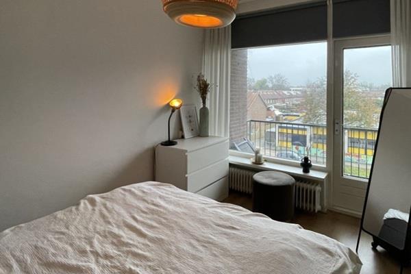 De woonkamer is ruim en voorzien van dubbele beglazing. Via de woonkamer is de ruimste slaapkamer bereikbaar per schuifdeur. Vanuit de slaapkamer is toegang tot het balkon. Aan de voorzijde van het appartement zijn twee kleine slaapkamers met ene open verbinding naar elkaar.