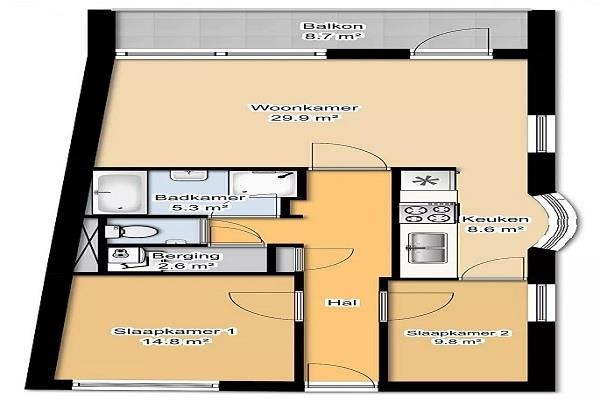 Het appartement heeft twee slaapkamers. De hoofdslaapkamer is ruim en licht, terwijl de tweede kamer ideaal is als werkplek, logeerkamer of hobbyruimte.