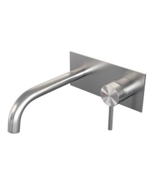 Brauer Stripe inbouw wastafelmengkraan met gebogen uitloop en afdekplaat model A1 RVS-kleurig geborsteld PVD