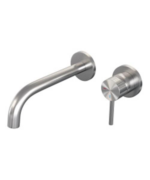 Brauer Stripe inbouw wastafelmengkraan met gebogen uitloop en rozetten model A1 RVS-kleurig geborsteld PVD