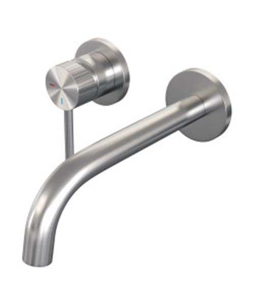 Brauer Stripe inbouw wastafelmengkraan met gebogen uitloop en rozetten model A2 RVS-kleurig geborsteld PVD
