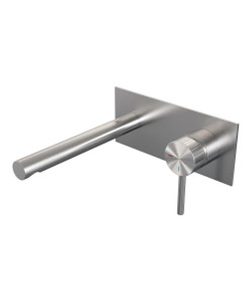 Brauer Stripe inbouw wastafelmengkraan met rechte uitloop en afdekplaat model A1 RVS-kleurig geborsteld PVD