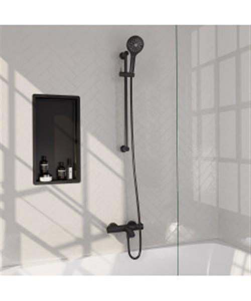 Brauer Stripe opbouw baddouche thermostaatkraan SET 02 met glijstang en 3-standen handdouche en doucheslang mat zwart