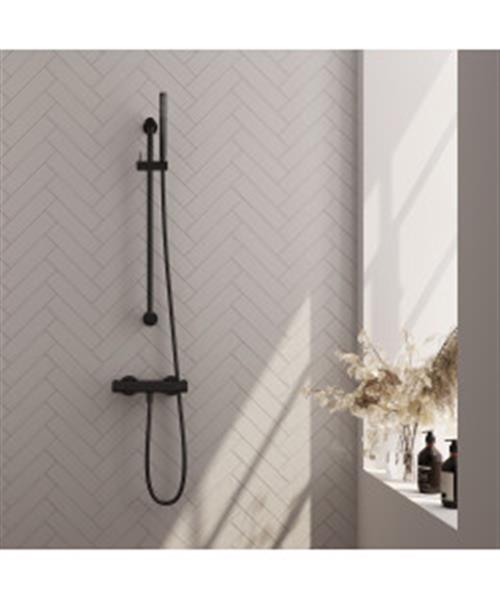 Brauer Stripe opbouw douche thermostaatkraan SET 01 met glijstang en staaf handdouche en doucheslang mat zwart