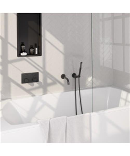 Brauer Stripe thermostatische inbouw badkraan met drukknoppen SET 03 met uitloop en staaf handdouche en doucheslang en wandaansluitbocht mat zwart