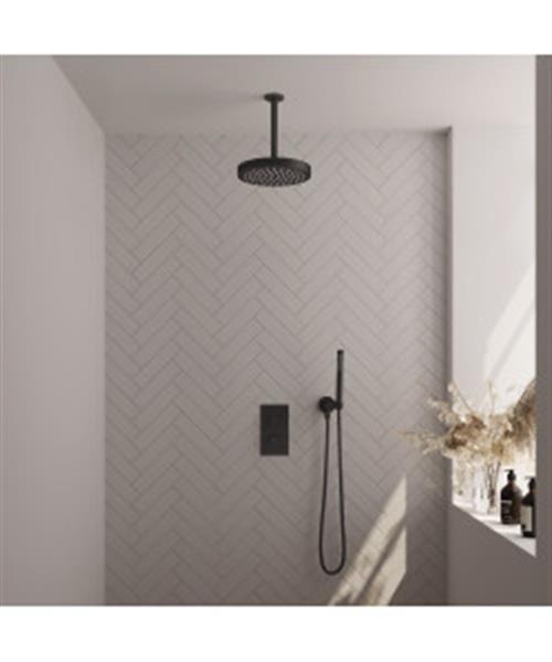 Brauer Stripe thermostatische inbouw regendouche 3-weg rechthoekig SET 15 met 25 cm douchekop en plafondarm en staaf handdouche en doucheslang en wandaansluitbocht mat zwart