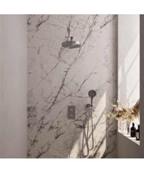 Brauer Stripe thermostatische inbouw regendouche 3-weg rechthoekig SET 16 met 25 cm douchekop en rechte muurarm en 3-standen handdouche en doucheslang en wandaansluitbocht RVS-kleurig geborsteld PVD