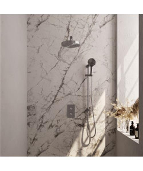 Brauer Stripe thermostatische inbouw regendouche 3-weg rechthoekig SET 22 met 25 cm douchekop en rechte muurarm en 3-standen handdouche en doucheslang en geintegreerde glijstang RVS-kleurig geborsteld PVD