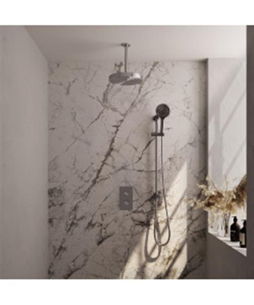 Brauer Stripe thermostatische inbouw regendouche 3-weg rechthoekig SET 24 met 25 cm douchekop en plafondarm en 3-standen handdouche en doucheslang en geintegreerde glijstang RVS-kleurig geborsteld PVD