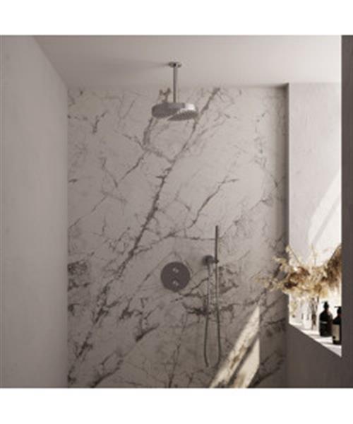 Brauer Stripe thermostatische inbouw regendouche 3-weg rond SET 39 met 25 cm douchekop en plafondarm en staaf handdouche en doucheslang en wandaansluitbocht RVS-kleurig geborsteld PVD