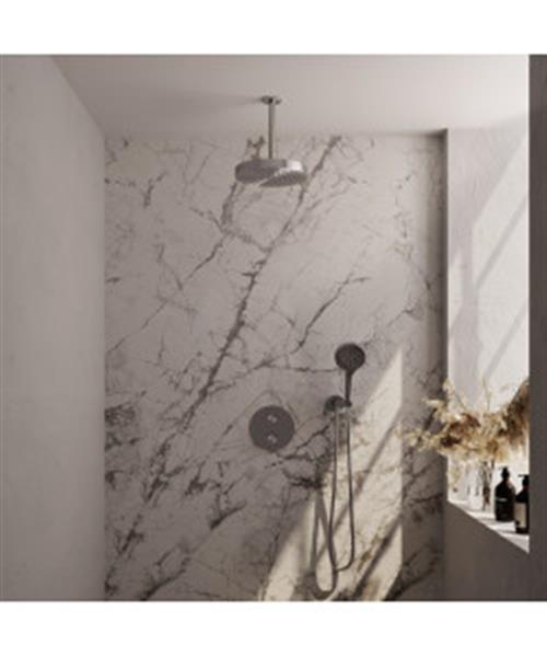 Brauer Stripe thermostatische inbouw regendouche 3-weg rond SET 42 met 25 cm douchekop en plafondarm en 3-standen handdouche en doucheslang en wandaansluitbocht RVS-kleurig geborsteld PVD