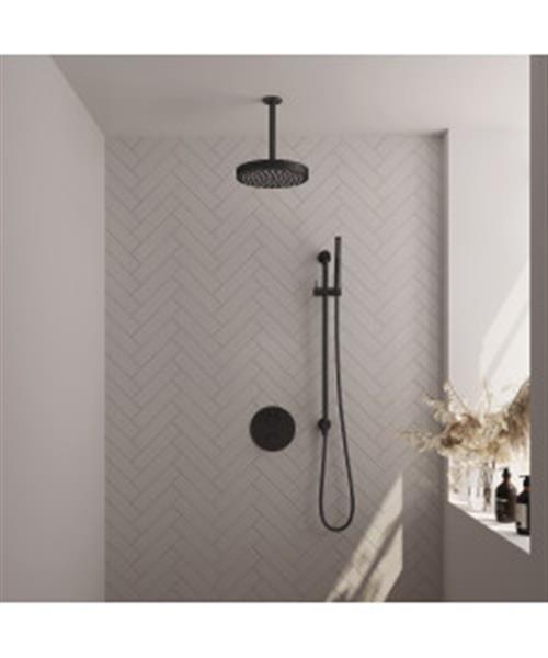 Brauer Stripe thermostatische inbouw regendouche 3-weg rond SET 45 met 25 cm douchekop en plafondarm en staaf handdouche en doucheslang en geintegreerde glijstang mat zwart