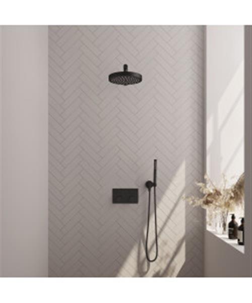 Brauer Stripe thermostatische inbouw regendouche met drukknoppen SET 25 met 25 cm douchekop en rechte muurarm en staaf handdouche en doucheslang en wandaansluitbocht mat zwart