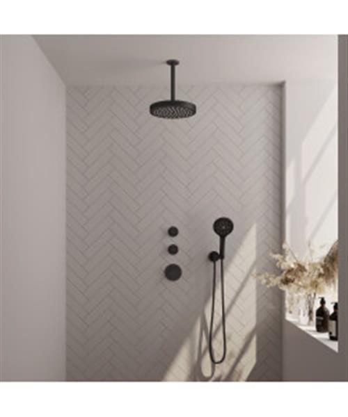 Brauer Stripe thermostatische inbouw regendouche SET 06 met 25 cm douchekop en plafondarm en 3-standen handdouche en doucheslang en wandaansluitbocht mat zwart