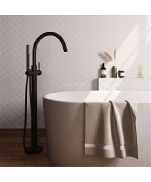 Brauer Stripe vrijstaande badmengkraan SET 01 met staaf handdouche en doucheslang mat zwart