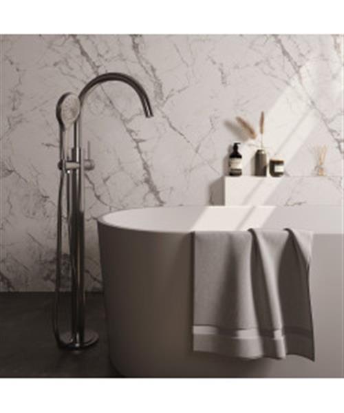 Brauer Stripe vrijstaande badmengkraan SET 02 met 3-standen handdouche en doucheslang RVS-kleurig ge