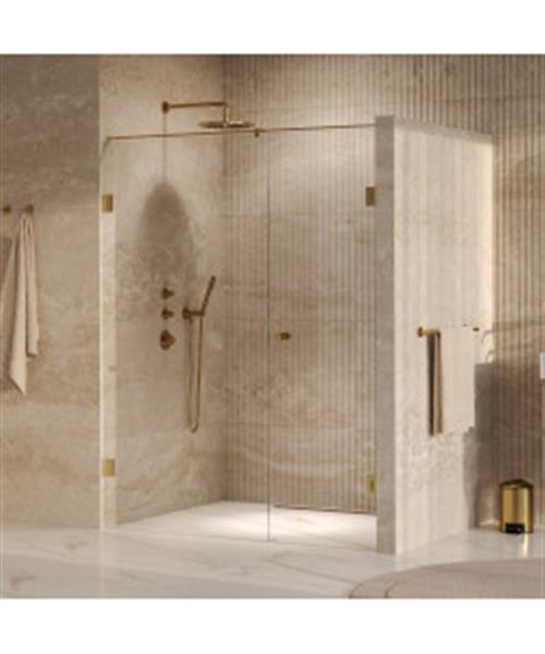 Ontdek de BRAUER Void Carving nisdeur 2-delig helder glas 160x200 omkeerbaar met draaideur 70 aan muur incl. glascoating PVD goud geborsteld, serie Carving, gemaakt van rvs,glas, in de kleur goud,helder en met geborsteld afwerking. Deze hoogwaardige uitvoering biedt perfecte kwaliteit en stijl voor uw badkamer.