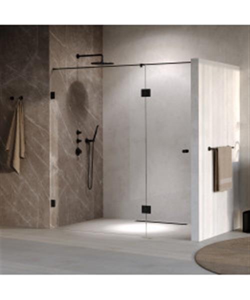 BRAUER Void Carving nisdeur 2-delig helder glas 200x200 omkeerbaar met draaideur 70 aan glas incl. glascoating mat zwart (GS-VOCN3H70130200MZ)