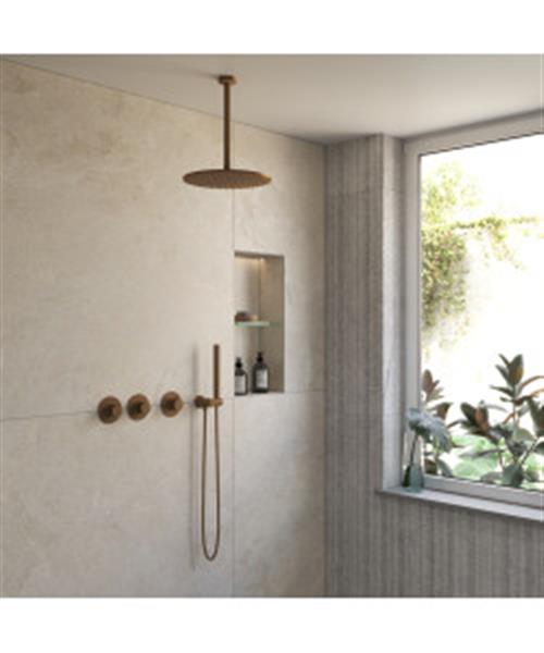 BWS Inbouw Regendouche | Sensa | Brons | Plafonduitloop | 30cm Hoofddouche met Handdouche | Stopkranen