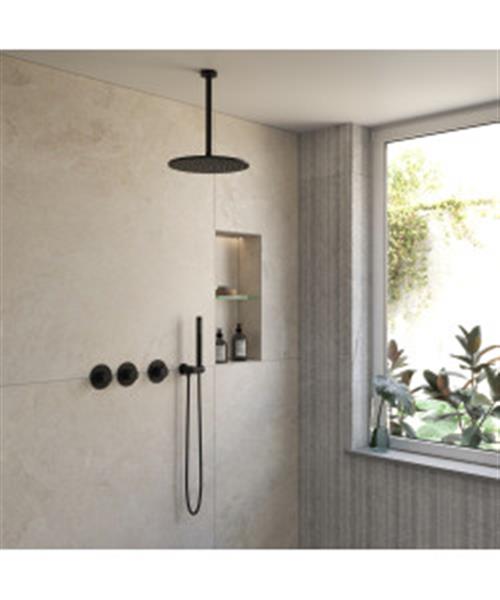BWS Inbouw Regendouche | Sensa | Mat Zwart PVD | Plafonduitloop | 30cm Hoofddouche met Handdouche | Stopkranen