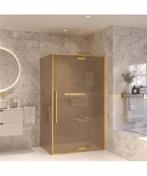 Douchecabine Sanivo Vigo Met Vast Paneel Champagne Glas Met Montagesets Geborsteld Messing Goud (Alle maten)