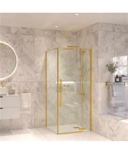Douchecabine Sanivo Vigo Met Vast Paneel Helder Glas Met Montagesets Geborsteld Messing Goud (Alle maten)