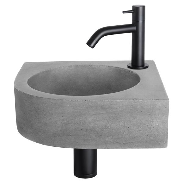 - Fonteinset Differnz Cleo 31.5x31.5x10 cm Beton Donker Grijs Met Kraan Gebogen Mat Zwart