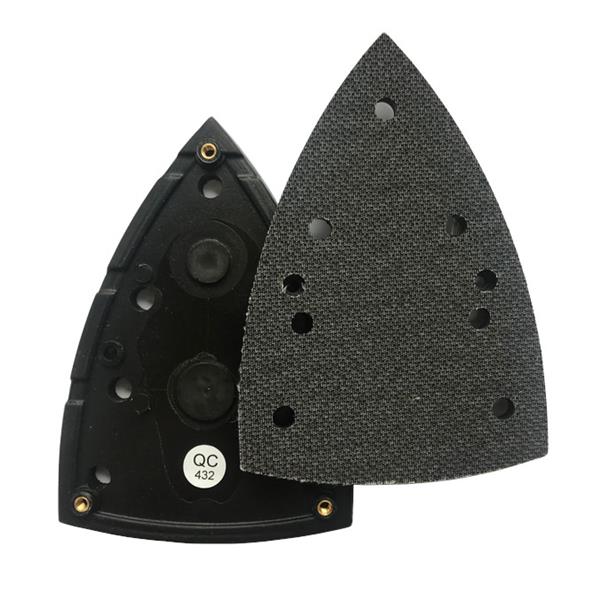 Losse klitteband zool voor de Hamach VH 914V delta. Nieuwe partij uit voorraad leverbaar. Deze steunzool past ook op de (niet meer leverbare) Hamach VH91V, RUPES LS90/91A (628.104) en de Atlas Copco VS11D. Op de afbeelding ziet u de bovenzijde en de onderzijde van deze zool.