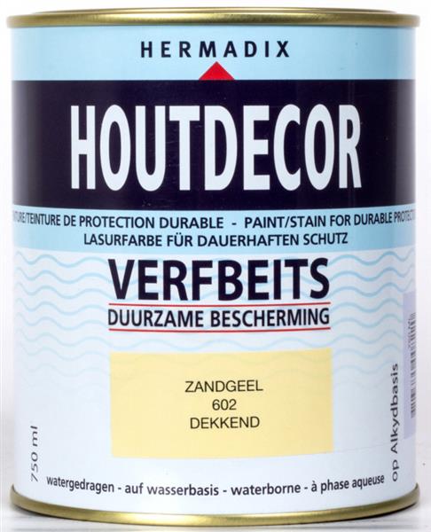 Houtdecor verfbeits ZANDGEEL 750 ml / 2500 ml Verf /Beits / Watergedragen / Kleurcode 602 / zijdeglanzende finish