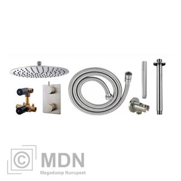 Inbouw regendouche set rond type 203 geborsteld staal (30cm)