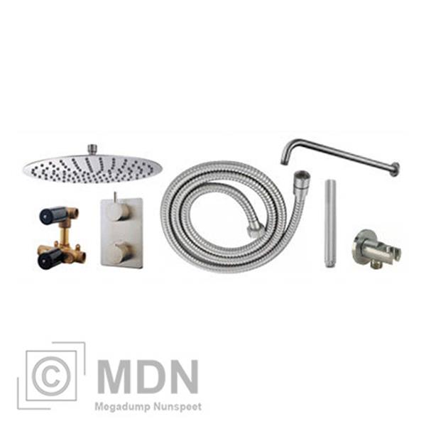 Inbouw regendouche set rond type 204 geborsteld staal (30cm)