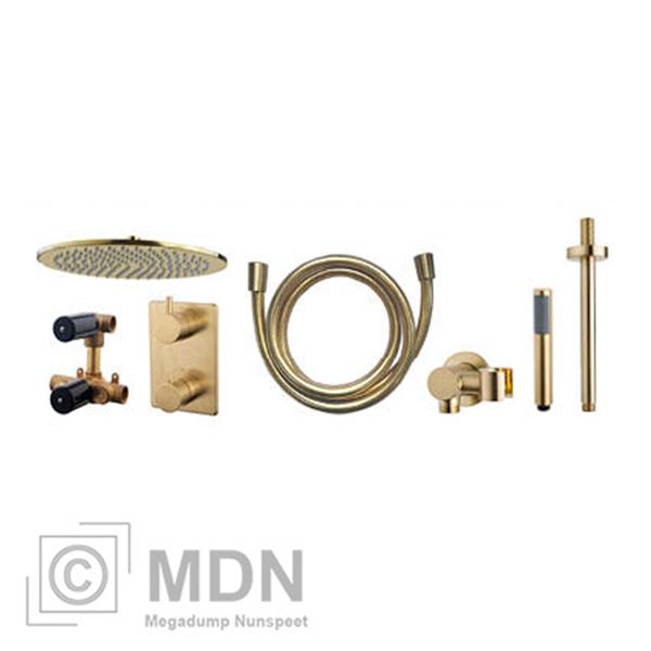 Inbouw regendouche set rond type 404 geborsteld messing (30cm)