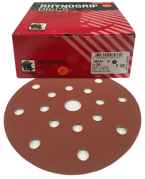 Indasa Rhynogrip RED Line 150mm met ROTEX en ETS 150 compatible 8 + 8 + 1 gaten per 50 schijven I150