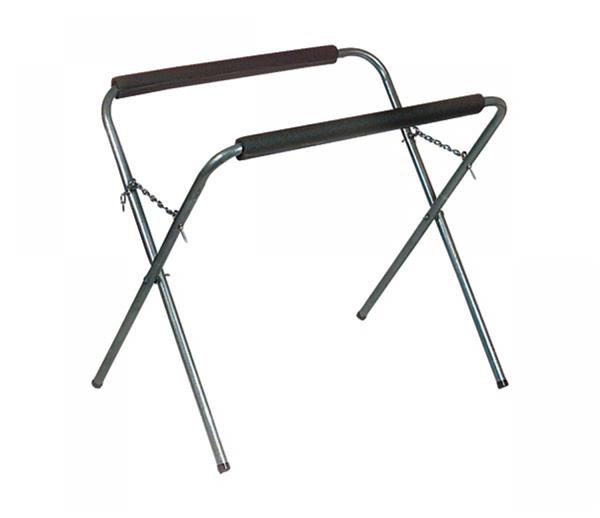 Hoogte is instelbaar. Met foambescherming. Capaciteit max. 227 kg. Gewicht 6,2 kg. Maat opgevouwen 106 x 106 cm.