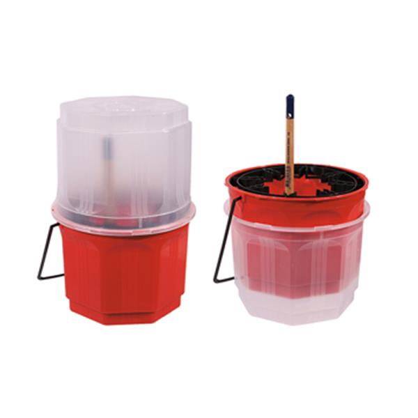 Lehnartz kwastenpot voor het grondig schoonmaken en optimaal bewaren van uw kwasten. Klemring voor 8 kwasten met bodemzeef waardoor de verfresten kunnen bezinken. In onze webshop zijn ook rauwe lijnolie (per 1 liter) en terpentine (per 5 liter) te bestellen.