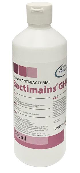 BACTIMAINS GHA is een hydroalcoholische desinfecterende gel van Laboratoire Garcin-Bactinyl bedoeld voor hygiënische behandeling of chirurgische desinfectie van de handen door wrijving, ontworpen voor iedereen die onder aseptische omstandigheden moet werken (tandartsen, artsen, verpleegsters, ...), of de operatiekamer binnengaat of industriële clean rooms. De te gebruiken wrijvingstechniek verbetert efficiënt de naleving van handhygiëne, bespaart tijd en vermindert het risico op intolerantie (effectiever en beter te verdragen dan wassen). Het wordt met name aanbevolen in noodsituaties, in geval dat toegang tot een wasstation niet mogelijk is, enz. Hygiënische behandeling van de handen is geschikt voor een gemiddeld risico. Chirurgische handdesinfectie is geschikt voor een hoog infectierisico.
