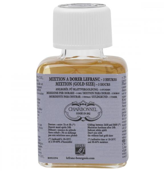 Origineel Lefranc & Bourgeois kleefmiddel voor het aanbrengen van bladgoud of bladzilver. Droogt snel aan, maar behoudt lange tijd kleefkracht waardoor het bladgoud vastgehouden wordt. Verbruik circa 125 ml per m². Droogtijd: 3 uur.