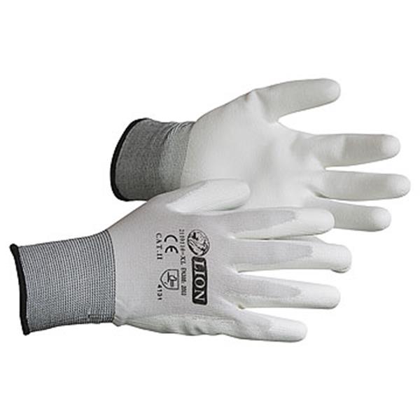 Nylon gebreide werkhandschoen, voorzien van een witte PU-coating. Bijzonder goede grip, voor vingergevoelige werkzaamheden.