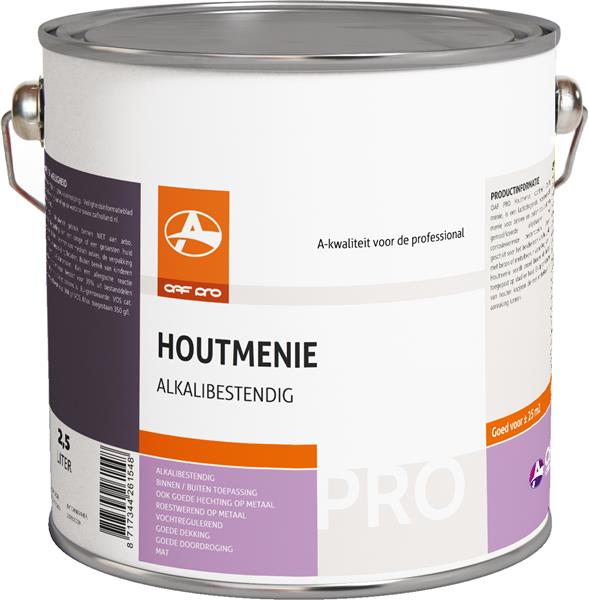 OAF PRO Houtmenie is de vervanger voor loodmenie. OAF PRO Houtmenie is een universele grondverf/primer voor hout en metaal. Deze menie heeft zeer speciale beschermende eigenschappen wat een traditionele primer niet heeft. Het beschermd het hout actief tegen verrotten en metaal tegen corrosie. OAF PRO Houtmenie is geschikt als grondverf voor het bijwerken van kale plekken op bestaand houtwerk, als vochtafsluitende laag op muurkanten van houten delen, als roestwerende primer op ontroest metaal. Eigenschappen: Roestwerend Geeft bescherming tegen schimmels en verrotten Goede dekking Snelle droging Kwaliteit voor de laagste prijs!