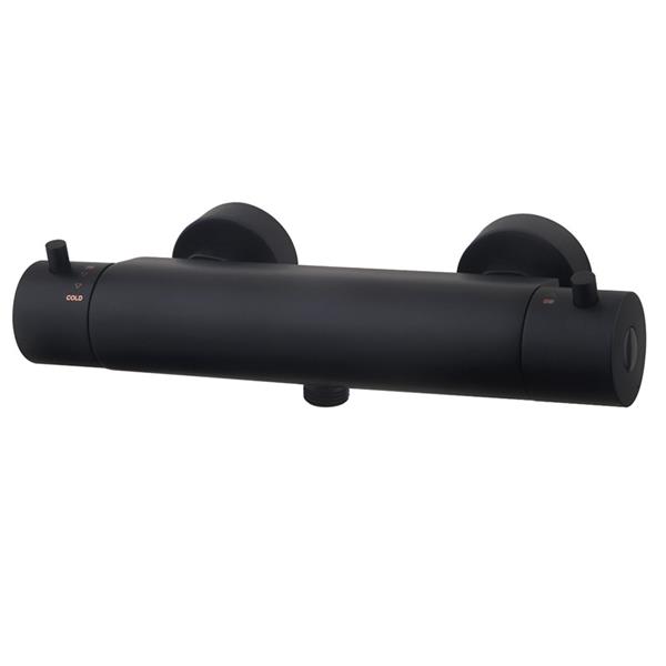 Douche thermostaatkraan zwart uit de Saniflex black serie. Met keramisch binnenwerk voor een lange levensduur. Voorzien van veilige cool touch body zodat de buitenkant van de kraan niet heet wordt (wel warm). Luxe design voor een betaalbare prijs.