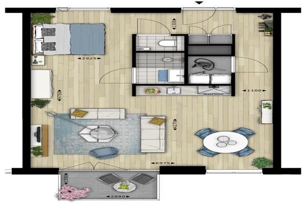 De heeft geen apart slaapgedeelte maar dit kan naar eigen smaak gecreëerd en ingericht worden De badkamer is strak vormgegeven en voorzien van een inloopdouche, moderne wastafel en designradiator. Een apart toilet zorgt voor extra comfort.