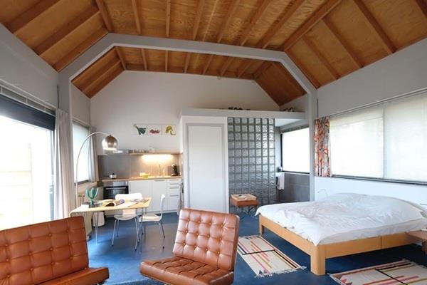 Comfortabele gemeubileerde studio met zithoek, eethoek, keukenblok met oven, tweepersoonsbed, televisie en draadloos internet. Badkamer met douche en toilet. Toegang tot tuin.