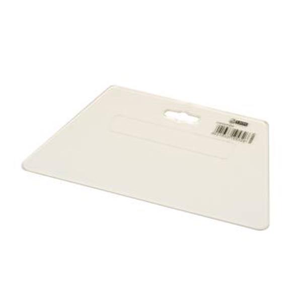Trapeziumvormige, transparante kunststof spatel voor het aandrukken van zware kwaliteit wandbekleding zoals textiel, suwide en vinyl.
