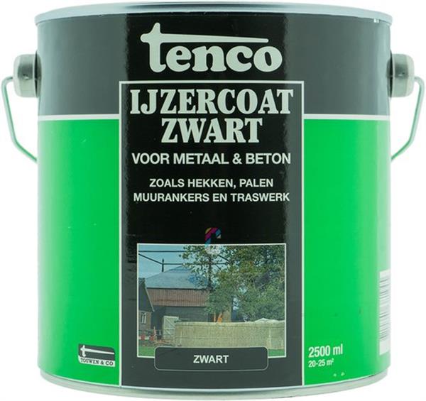 Tenco IJzercoat zwart is een roestwerende coating voor ijzerwerk zoals hekken, muurankers, chassis, betonnen palen enz. welke voorheen zijn behandeld met teer- of bitumenproducten. Tenco IJzercoat zwart wordt gebruikt ter bescherming en verfraaiing van ijzer, beton en steenachtige materialen. Hecht direct op oude teer- en bitumenlagen en opgeruwde verflagen. Tenco IJzercoat zwart biedt een roestwerende bescherming, is gemakkelijk aan te brengen en eenvoudig in onderhoud.