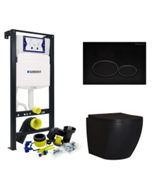 Toiletset Plieger Frame By Geberit met Mudo randloos Toilet Mat Zwart en Softclose Zitting