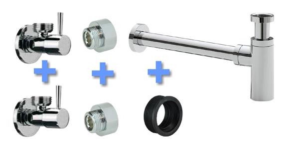 Uni-2 luxe fontein/wast. aansluitset+sifon chr