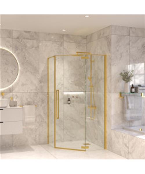 Vijfhoekige Douchecabine Sanivo Vigo 100x100x200 cm Geborsteld Messing Goud